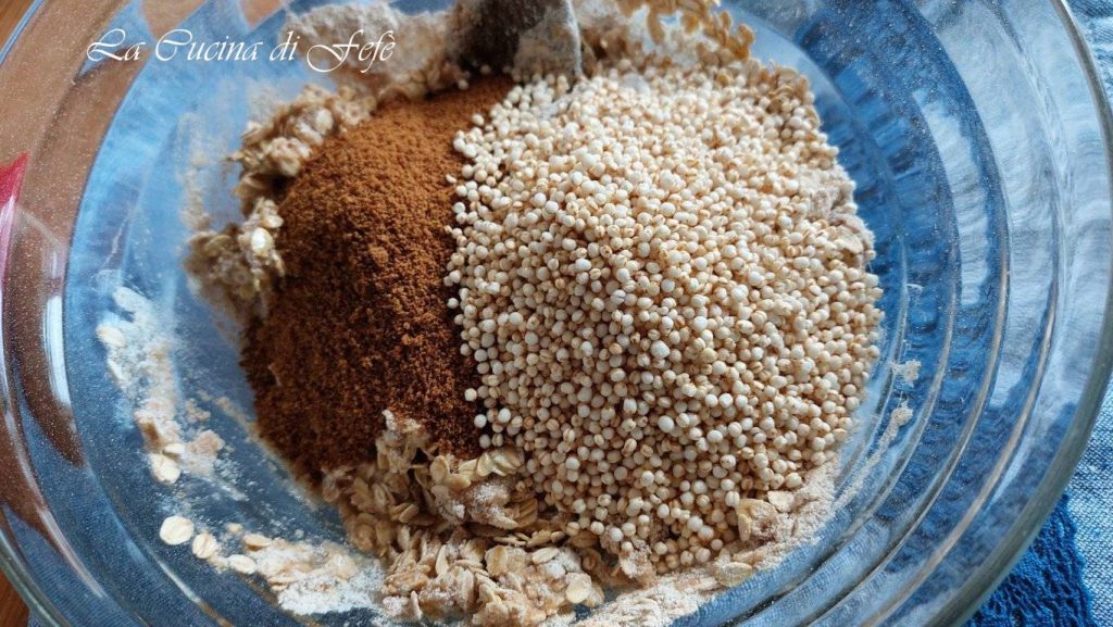 • Voeg dan het volkorenmeel en de havermout toe en meng met een lepel.