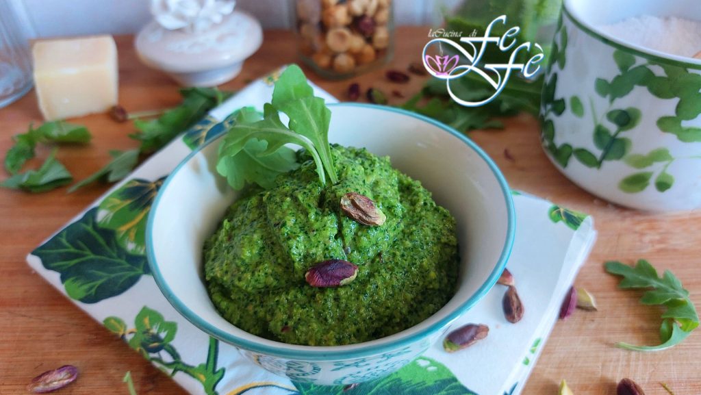 Maar hoeveel hou ik van pesto? Je vindt hier op de blog verschillende voorstellen en combinaties omdat ze praktische, snelle en vooral heerlijke sauzen zijn, perfect voor elke gelegenheid! Een van de pestorecepten die ik het meest waardeer, is die met rucola vanwege zijn licht pittige maar tegelijkertijd omhullende en smakelijke smaak! Het wordt gemaakt met verse rucola, bij voorkeur uit eigen tuin, en gemixt met alle andere ingrediënten rauw, waardoor je in een paar minuten een begeleidende saus voor je gerechten of een romige en smakelijke pastasaus krijgt. Ik gebruik het vaak om op bruschetta, crackers en crostini te smeren, maar je kunt het ook combineren met vlees, eieren, of gebruiken om pinsa’s, pizza’s en focaccia te garneren! Het is extreem eenvoudig en snel te bereiden, en je kunt het ruim van tevoren maken, in de koelkast bewaren of in porties invriezen om alleen de benodigde hoeveelheid te ontdooien. Het enige aandachtspunt voor een perfect resultaat is de keuze van de ingrediënten: weinig, maar van hoge kwaliteit!