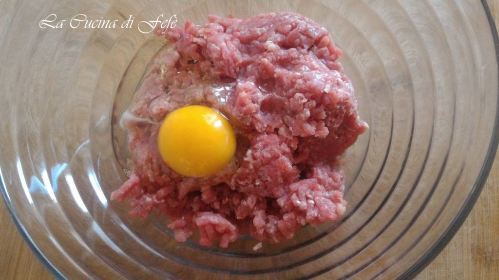 In een grote kom, werk het gehakt met het ei.