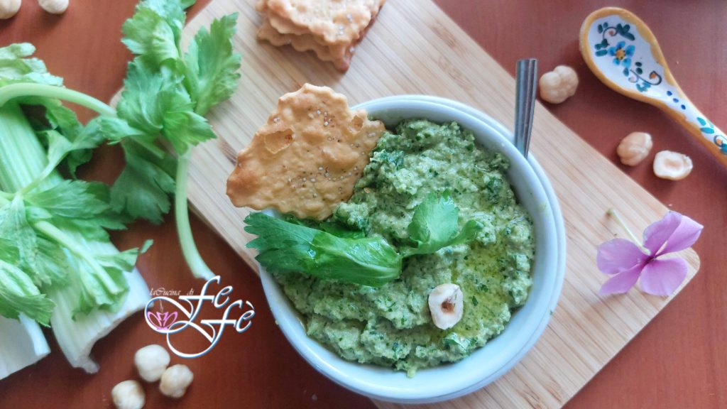 Heb je ooit bleekselderij gebruikt om een heerlijke pesto te maken? Nee? Dan is het nu echt tijd om het te proberen! Ik gebruikte eerst alleen de bladeren en voegde amandelen toe, naast een bescheiden hoeveelheid pijnboompitten, maar later maakte ik ook gebruik van de stengels van de bleekselderij en verving de amandelen door hazelnoten, en ik moet zeggen dat het nog lekkerder was! De combinatie van deze eenvoudige kwaliteitsingrediënten heeft een supergezonde en veelzijdige saus opgeleverd, die bovendien verrassend smakelijk is! Door het te verdunnen met kookvocht kun je het gebruiken om je favoriete pasta aan te kleden, of als een romige en dikke saus serveren bij een aperitief, vergezeld van crostini, bruschetta, grissini of wat je fantasie je ook maar ingeeft! Uiteraard moeten de overgebleven stengels niet worden weggegooid, maar volledig worden gebruikt als een soort crudités samen met andere groenten, en ik verzeker je dat je een geweldige indruk zult maken!