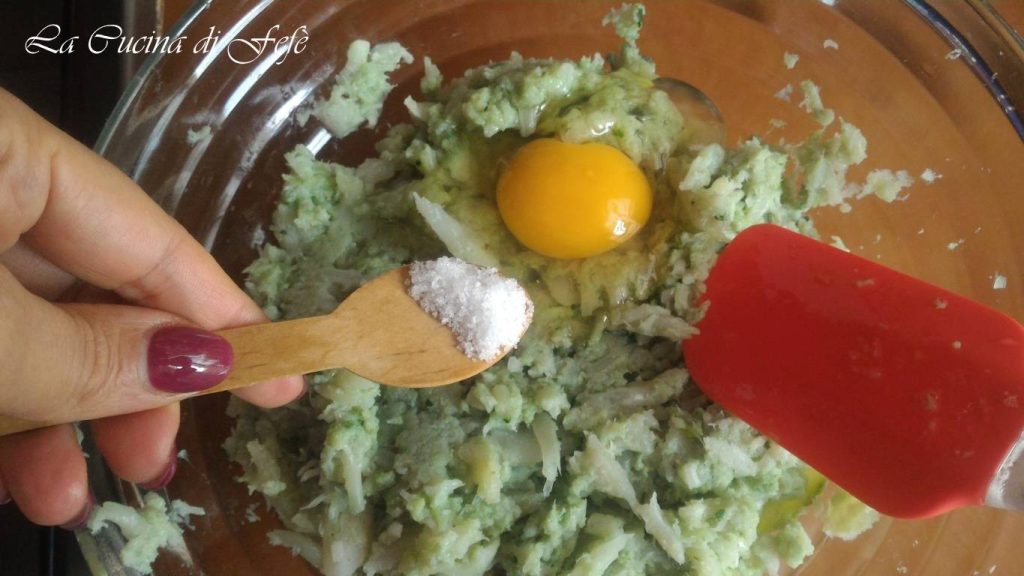 Roer met een spatel of lepel en voeg ten slotte de bloem en het paneermeel toe. Meng opnieuw, dek af met vershoudfolie en laat een uur in de koelkast rusten. Op deze manier zal het paneermeel al het overtollige vocht opnemen.