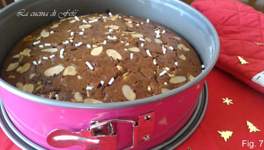 Meng de pijnboompitten, gekonfituurde vruchten en licht met bloem bestoven chocolade hagelslag door het beslag om te voorkomen dat ze naar de bodem zinken, of roer gewoon niet te veel (fig. 5).