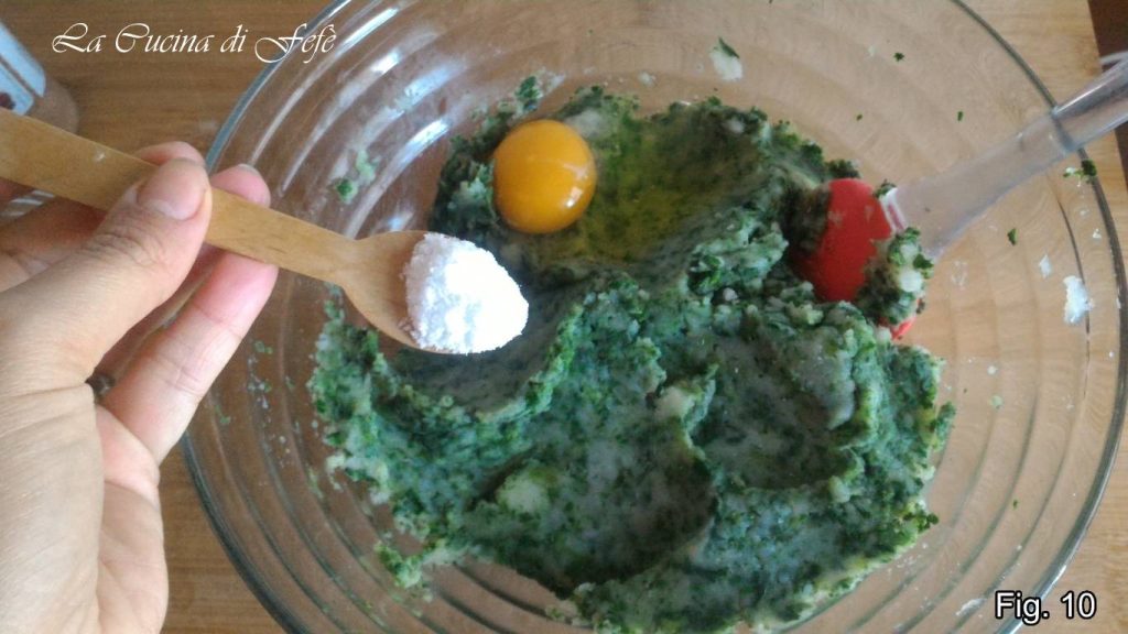 Voeg het ei toe en breng op smaak met zout (fig. 10).