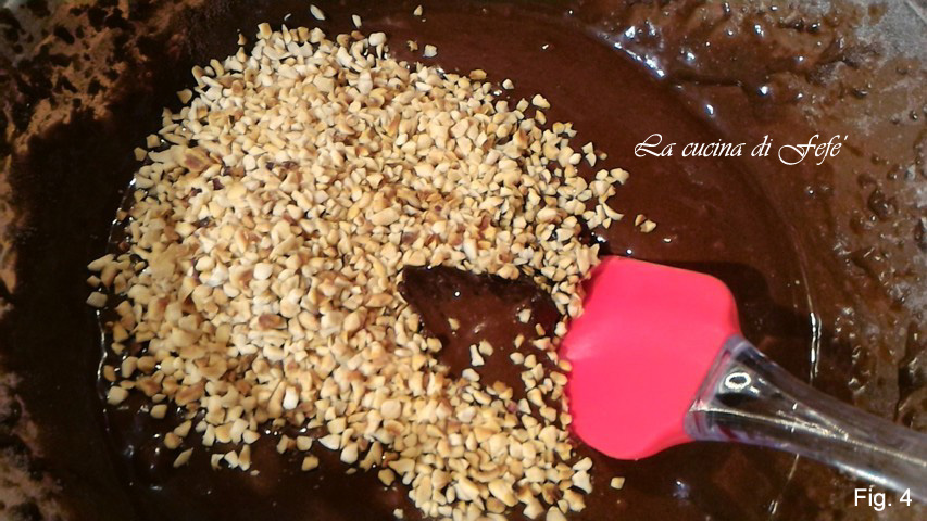 • Voeg de gehakte hazelnoten toe en meng met een spatel (fig. 4).