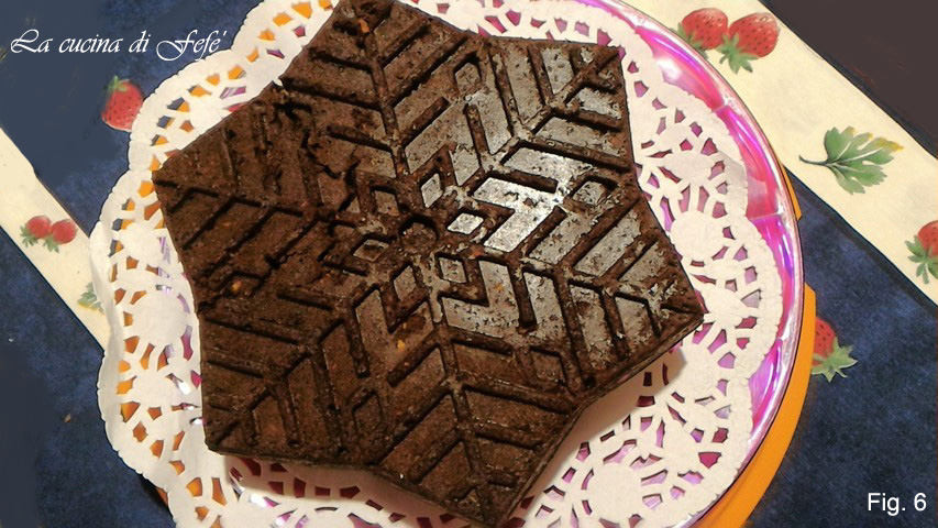 • Strijk glad en zet in een voorverwarmde statische oven op 180°C voor 45′. De tandenstokertest is leidend. Haal dan uit de oven en laat afkoelen voordat je de taart uit de vorm haalt (fig. 6).