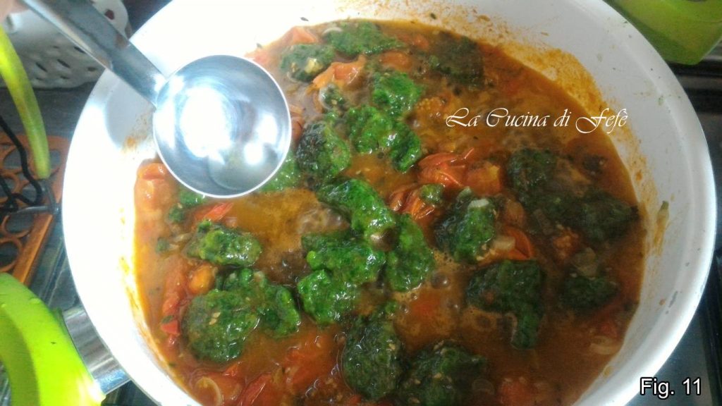 • Zet de brander weer aan waar je de tomatensaus hebt bereid en doe de gnocchetti erin, voeg een paar lepels kookwater toe en laat ze nog een paar minuten smaken.
