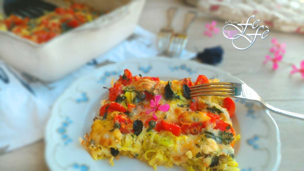 Bij ons thuis is het motto frisheid en authenticiteit, vooral in de zomer! Groenten nemen een veel minder marginale plaats in vergeleken met het verleden en ik hou ervan om een vleugje originaliteit te geven in plaats van de gebruikelijke en saaie bijgerechten te serveren! Bovendien lijkt het erop dat creativiteit in het koken van groenten het makkelijker maakt om de gouden regel van voedingsdeskundigen te volgen, namelijk vijf porties fruit en groenten per dag consumeren. Gelukkig is er veel meer bewustzijn over gezond maar smakelijk eten, en dit is vooral duidelijk vanwege de opkomst van voedingsmodellen zoals vegetarisme, veganisme en zelfs rauwe voeding! Degenen die mij kennen, weten dat ik me niet strikt aan deze vormen houd, maar ik heb mijn eetpatroon veranderd vanwege aanvankelijke gezondheidsproblemen, door van alles een beetje te eten en voortdurend te variëren. Weinig vlees, veel groenten die strikt volgens het seizoen zijn, gerechten op basis van peulvruchten en ovenkoken met als doel licht te blijven en alle nodige voedingsstoffen binnen te krijgen. Dit gerecht dat ik je vandaag laat zien, heeft alles in zich om je favoriet te worden en, hoewel ik het aanraad als bijgerecht, kan het ook een heerlijk voorgerecht worden dat je direct in individuele cocottes kunt bakken! Als je een spiraalsnijder hebt, ben je al halverwege! Je kunt gemakkelijk courgettespaghetti maken die de basis vormen van dit recept, net als vele andere die ik je in de loop der tijd zal aanbieden en die je veel voldoening zullen geven! Als dat niet het geval is, kun je ze raspen om de textuur zo goed mogelijk na te bootsen! Kortom, een eenvoudige en authentieke ovenschaal, zeer aromatisch en met dat vleugje zoutigheid van de pecorino die het geheel een onmiskenbare originaliteit zal geven!