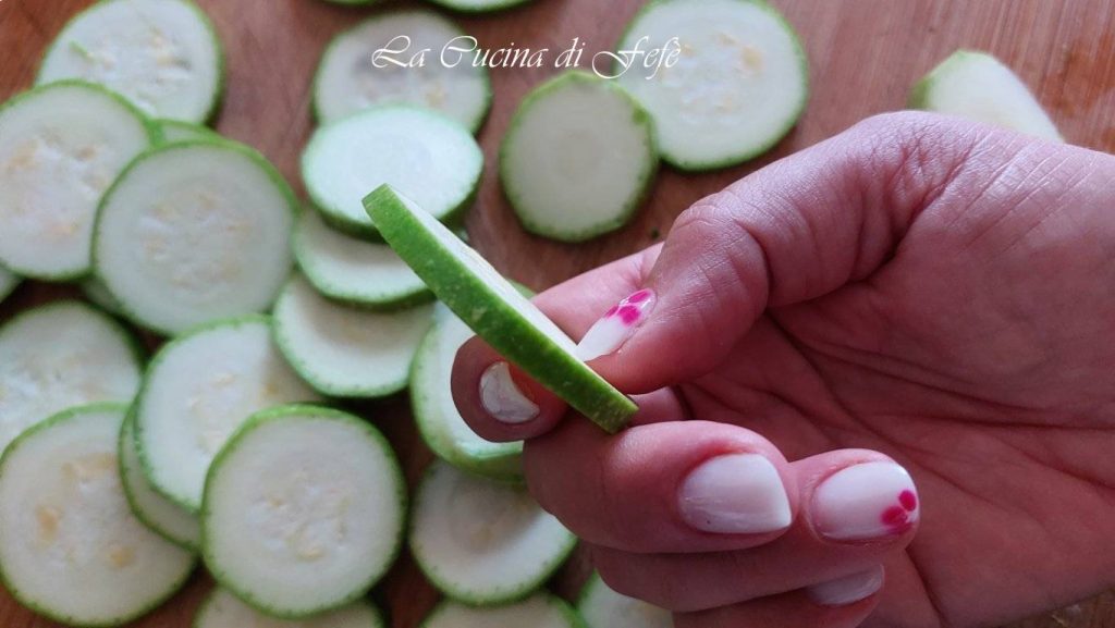 Was, snijd en snijd de courgettes in plakjes van ongeveer ½ cm dik (fig. 1).