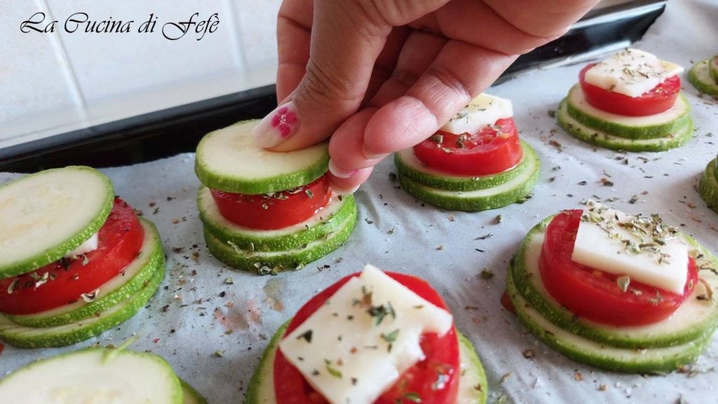 Zoals velen van jullie inmiddels weten, houd ik ervan om, wanneer ik in de keuken een geslaagd gerecht maak, er vervolgens variaties op uit te proberen! Daarom heb ik, nadat ik mijn onweerstaanbare torentjes van smeltende aubergines met oregano aan de familie had voorgesteld, besloten om hetzelfde principe toe te passen op andere seizoensgroenten, zoals courgettes, dankzij hun ongelooflijke veelzijdigheid! Ik moet zeggen, deze versie leek zelfs nog smakelijker! Ik weet echter niet zeker of dat kwam doordat ik over het algemeen courgettes verkies boven aubergines, of omdat ik ervoor koos om alles royaal te kruiden met oregano, die mijn lieve schoonmoeder me gisteren gaf en die ik erg lekker vind! Hoe dan ook, deze torentjes zijn echt smakelijk en leuk als een grappig fingerfood-voorgerechtje of als een rijke en smakelijke bijgerecht! En je kunt er zeker van zijn dat ze niet weinig voldoening in de familie zullen geven! Bovendien zijn ze in zeer korte tijd klaar, wat nooit schadelijk is, toch? Je hoeft alleen de groenten rauw te stapelen en klaar is kees. Binnen minder dan een uur heb je een echt origineel en smakelijk gerecht op tafel!