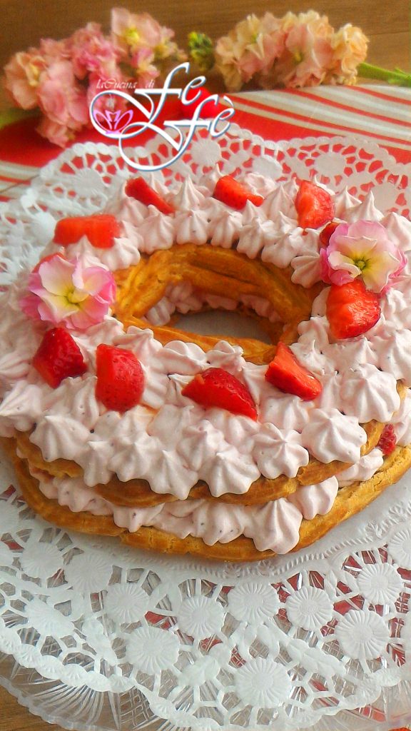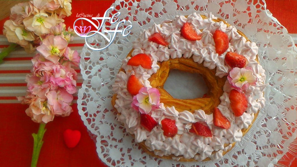 Dit jaar vergeef je me als ik mijn taart voor het feest van Sint Jozef en dus ook voor papa’s feest wat laat deel! Maar ik heb het erg druk gehad en ik heb het vandaag pas af kunnen maken. Het maakt niet uit, deze taart is geschikt voor elke gelegenheid! Ik heb besloten om voor dit doel mijn onfeilbare en goed geteste soezendeeg recept te gebruiken om een heerlijke typisch Napolitaanse taart met wow-effect te maken, de torta zeppolone! Het is een meer scenografische versie van de klassieke zeppole di San Giuseppe uit de oven die ik vorig jaar maakte met een vegan mandarijncrème en werkelijk heerlijke aardbeien. De torta zeppolone wordt, net als de zeppole, gemaakt met een basis van soezendeeg en meestal gevuld met banketbakkersroom of slagroom. Ik koos ervoor om het te garneren met een mascarponecrème zonder eieren, lichter gemaakt met Griekse yoghurt en gearomatiseerd met aardbeien. Een gelukkige keuze die een prachtige roze kleur en een zoetere en delicatere smaak gaf, die echt iedereen, zelfs je kleintjes, zal veroveren. Het enige waar je op moet letten voor een perfect resultaat van de taart, is het bakken. Het is belangrijk dat de taart eerst op hoge temperatuur en daarna op een lagere temperatuur in de oven wordt gebakken, zodat hij langzaam groeit zonder meer in te zakken, zelfs niet na het uit de oven halen! Verder is het kinderspel en zul je een geweldige indruk maken!