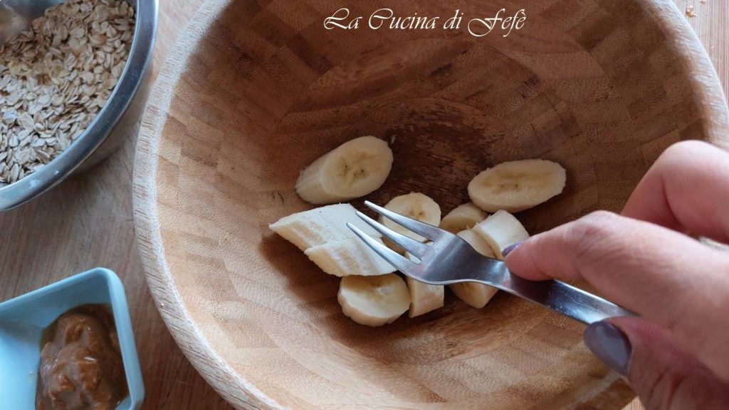 • Schil een rijpe banaan, snijd hem in schijfjes en prik hem fijn in een schaal met de tanden van een vork.