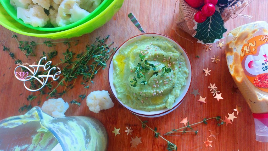 Als je net als ik van hergebruik- of anti-verspillingsrecepten houdt, die je in staat stellen om smakelijke gerechten op tafel te zetten zonder kosten en afval, dan ben je op de juiste plek! Deze, van mijn vele begeleidende sauzen, is echt lekker en slim, omdat het voortkomt uit het gebruik van eetbare delen van groenten zoals de bloemkool die anders zouden worden weggegooid! Hier worden ze de onbetwiste hoofdrolspelers! Het resultaat is een vegan mayonaise die super lekker en veelzijdig is, met een romige en fluweelzachte textuur, die je letterlijk zal veroveren! Je kunt het bereiden voor de komende feestdagen om al je voorgerechten te begeleiden. Het is perfect om toe te voegen aan toastjes, vol-au-vent, of als saus bij groenten, witte en rode vleesgerechten. Ik serveerde het met gegratineerde bloemkoolroosjes uit de oven voor een echt smakelijke vegetarische versie, die ik je binnenkort laat zien! Onthoud alvast dit recept, dat bovendien snel en eenvoudig te maken is en dat je ruim van tevoren kunt bereiden en in de koelkast kunt bewaren of invriezen voor speciale gelegenheden!