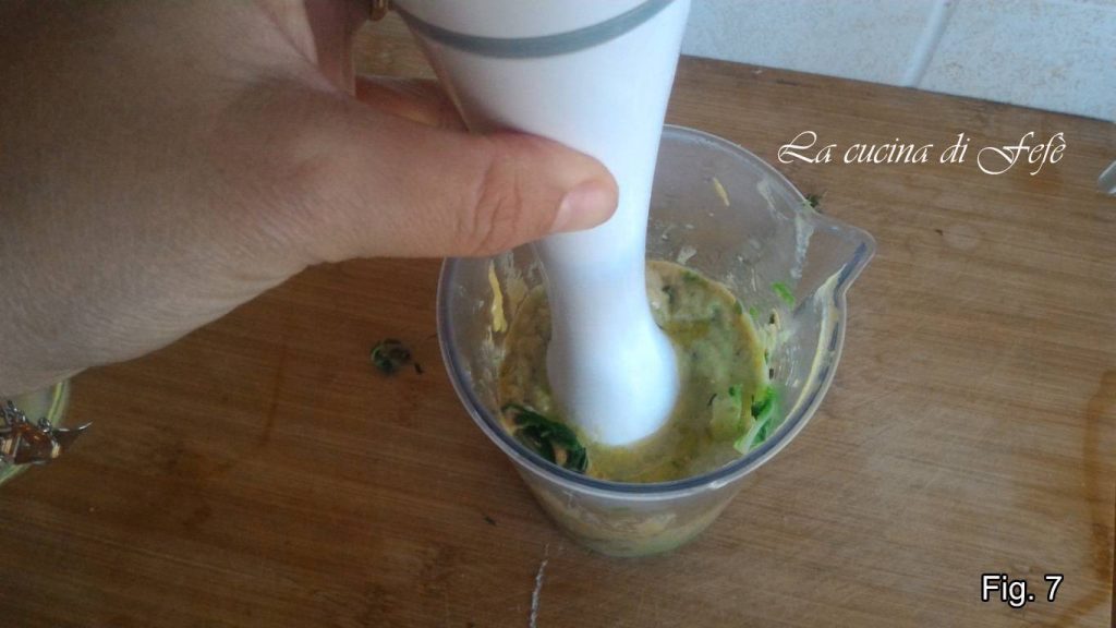 Voeg indien nodig 1 of 2 eetlepels kookwater toe om de juiste consistentie te verkrijgen, maar in mijn geval was het niet nodig, en blend in meerdere fasen (fig. 7).