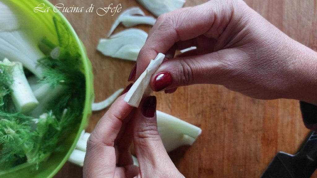 Begin met het schoonmaken van de venkel: was ze onder stromend water, verwijder de stelen maar bewaar alle plukjes die je nodig hebt om het gerecht te garneren.