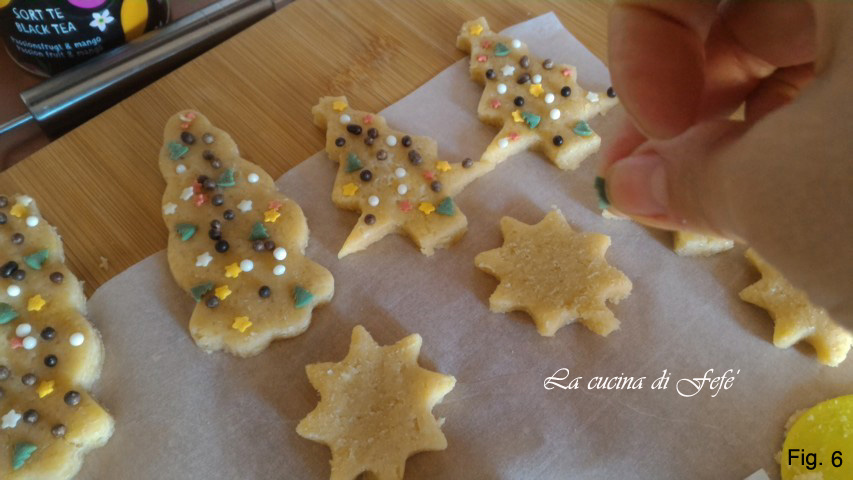 Bestrijk je koekjes met een beetje melk, versier ze met de vermicelli naar keuze en zet ze in een voorverwarmde statische oven op 180°C voor 12’/13′ (fig. 5).