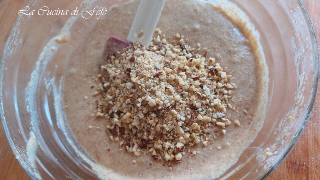 Voeg tenslotte de gemalen noten toe, eerder gemalen met een mixer, en meng met de spatel.