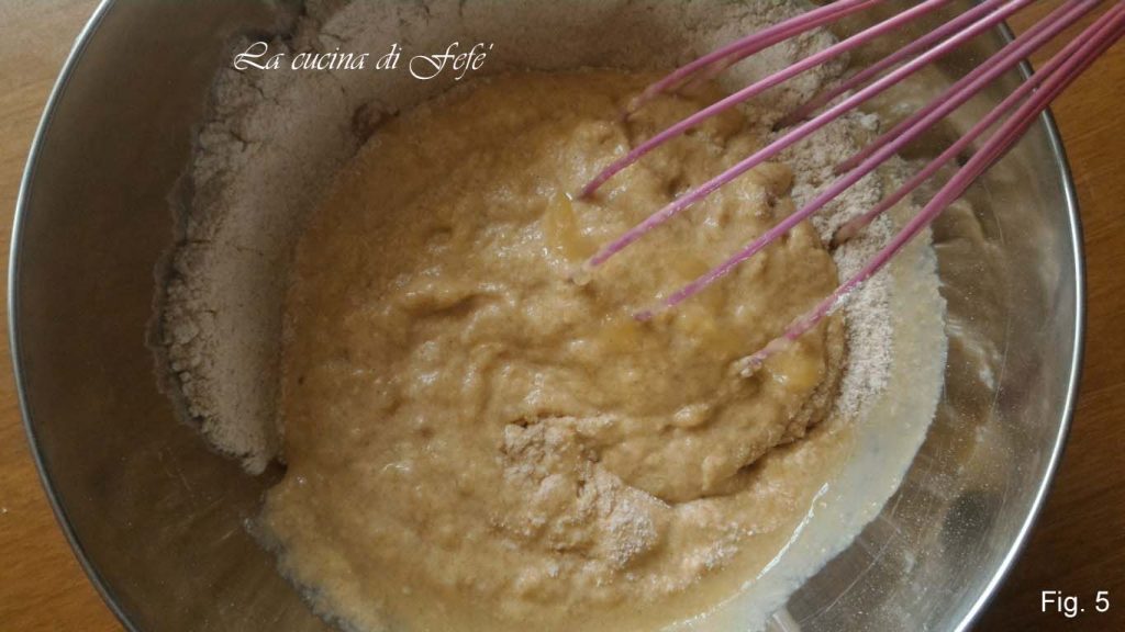 Voeg beetje bij beetje het meel toe om klonten te voorkomen.