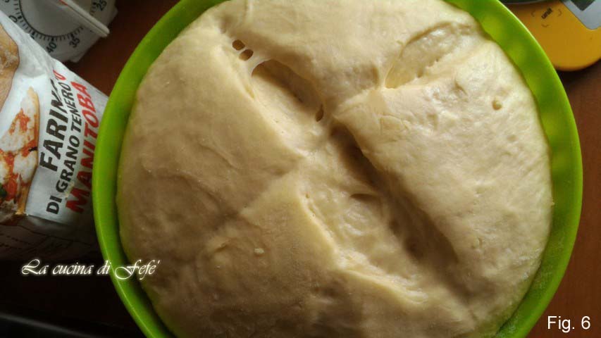 Laat het rijzen in de uitgeschakelde oven met het licht aan voor ongeveer 4-5 uur, tot het volume is verdubbeld** (fig. 6).