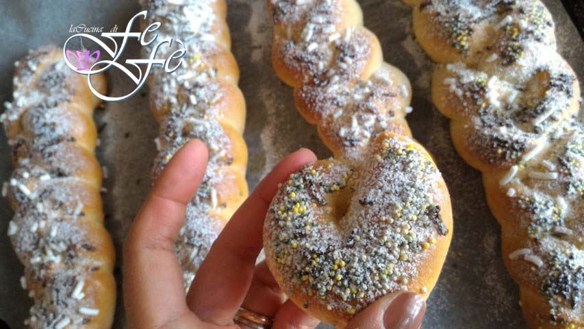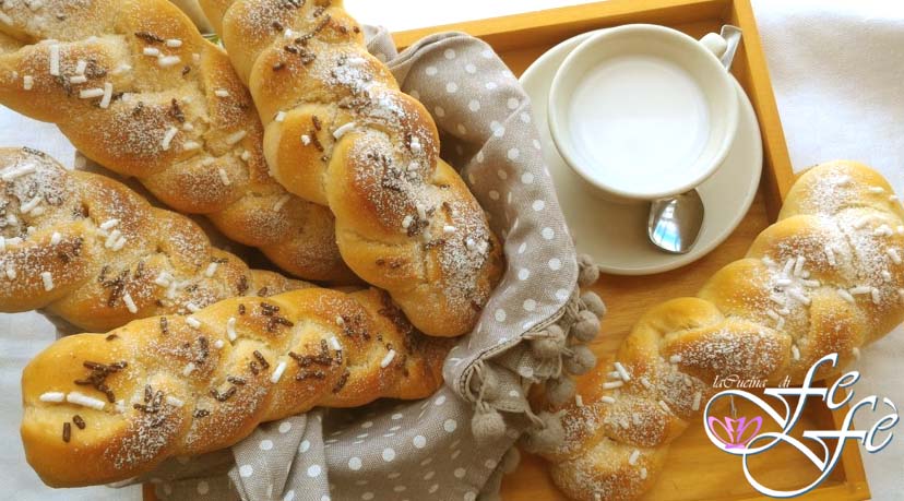 Enkele weken geleden kwam ik een recept tegen van Benedetta Rossi die heerlijke gevlochten broodjes voor het ontbijt maakte. Ik was meteen geïnteresseerd, hoewel ik het recept heb aangepast door de room te vervangen door zelfgemaakte amandelmelk, die veel lichter en beter verteerbaar is. Het ideale zou zijn om het te maken met water en amandelpasta, de smaak verbetert, maar voor het gemak kun je ook die uit een pak gebruiken. Het belangrijkste is om een kwaliteitsproduct te kiezen met minstens 11% amandelen, anders kun je het beter laten! Verder, omdat ik een zoetekauw ben, heb ik de bovenkant, voordat ik het in de oven deed, versierd met suikergranulaat en chocoladestukjes die er fantastisch uitzagen! Afgelopen weekend genoten we van deze prachtige creaties bij het ontbijt met de resterende amandelmelk en het was een heerlijke traktatie die we onszelf gunden! Je kunt ze, eenmaal gebakken, in diepvrieszakken doen en binnen een maand na invriezen consumeren. Als je er zin in hebt, hoef je ze alleen een paar uur van tevoren uit de vriezer te halen en op te warmen, zoals ik deed in de magnetron, en ze zullen weer heerlijk zacht zijn, net als in een café!