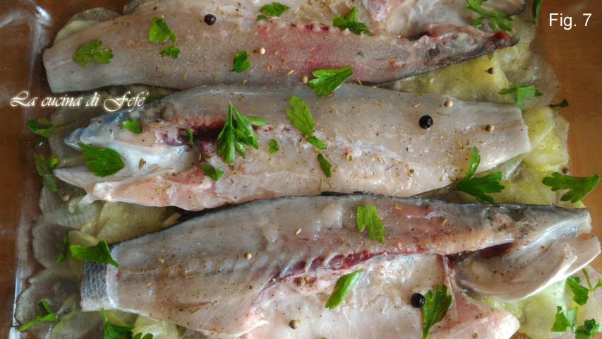 • Zout, peper, voeg een paar blaadjes peterselie toe, een scheutje olie (weinig) en een beetje van de marinade vloeistof (fig. 7).