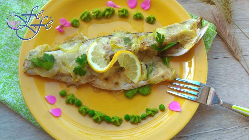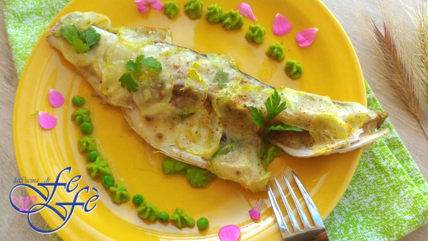 Een tijdje geleden, om mijn huwelijksverjaardag te vieren, organiseerde mijn man als verrassing een super romantisch diner in een vijfsterren gourmetrestaurant. De ervaring, geloof me, was ongelooflijk! Het eten, pure esthetische kunst voor de ogen en poëzie voor het gehemelte! Die avond was alles perfect, ik durf zelfs te zeggen onberispelijk, elk detail verzorgd tot in de puntjes, maar er was één gerecht dat mij vooral raakte! Het inspireerde mij zozeer dat het, zodra we thuiskwamen, mijn diner voor de volgende dag inspireerde, en daarna nog vele malen werd herhaald vanwege het ongelooflijke succes! Natuurlijk improviseerde ik gewoon met inspiratie, aangezien ik het niet rechtstreeks aan de chef kon vragen! Desalniettemin maakt het niet uit, want uiteindelijk kon ik met grote voldoening misschien wel een van de beste visgerechten presenteren die ik tot nu toe heb gemaakt! Ik herinner me dat deze uiterst delicate zeebaarsfilets werden geserveerd met knapperige artisjokharten en bietjes op een onverslaanbare saus. Ik heb een paar kleine aanpassingen aan het gerecht gemaakt, waarbij ik de artisjokken verving door een versie in een korst van gearomatiseerde courgettes en geserveerd op een bed van doperwtencrème dat niet veel hoefde te onderdoen voor het origineel, zonder al te veel zelfvoldaanheid! Het is onmogelijk om de smaak te beschrijven zonder het gewoon te proeven!