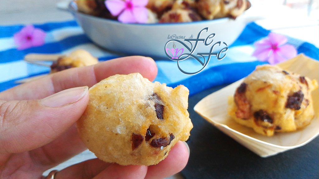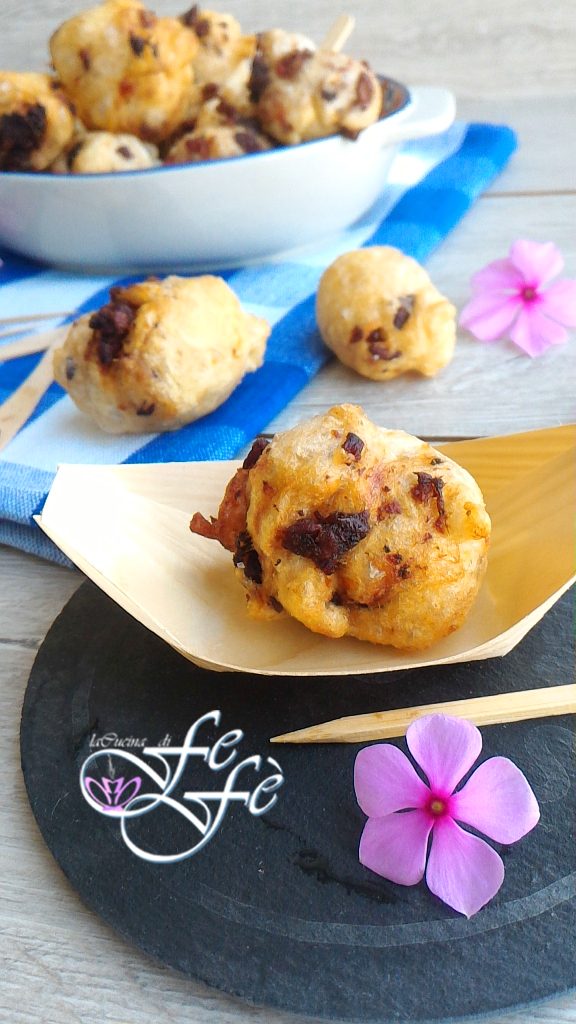 En voilà… de zeppole van gerezen deeg met olijven en gedroogde tomaatjes zijn klaar om van te genieten!