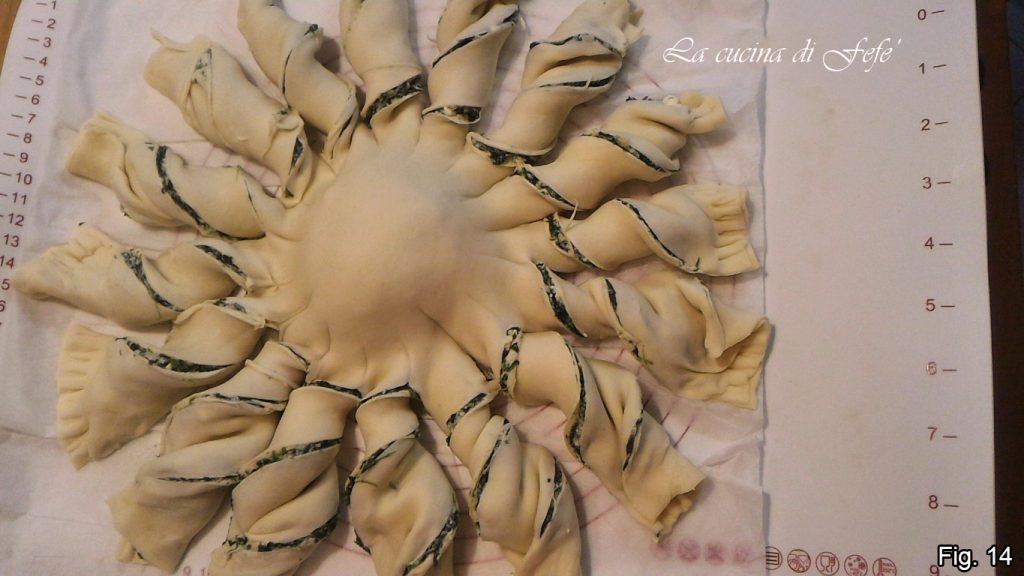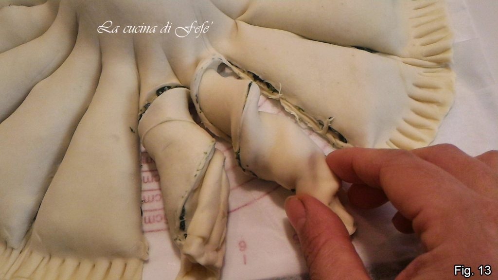 Draai elke straal zeer voorzichtig twee keer om zichzelf zodat de vulling naar boven is gericht (fig. 13).
