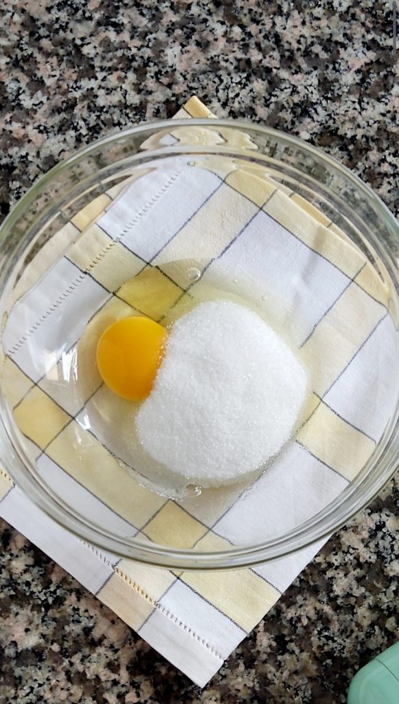 Was de blauwe bessen en laat ze uitlekken op keukenpapier. Klop het hele ei met de suiker gedurende 2-3 minuten tot een lichte en schuimige massa.