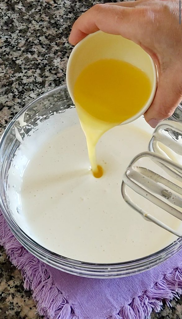 Voeg de gesmolten boter en de natuurlijke yoghurt toe. Meng goed.