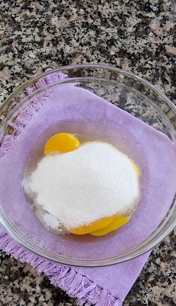 • Klop in een kom de 2 eieren met de suiker met behulp van een elektrische mixer gedurende ongeveer 6-7 minuten, totdat je een lichte en schuimige massa hebt.