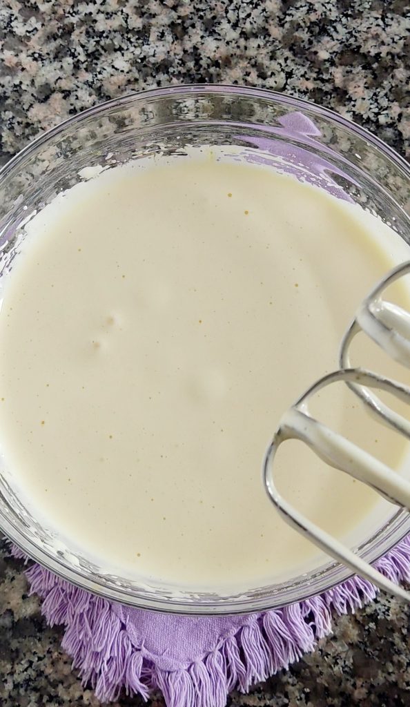 Klop de eieren en suiker goed tot een licht en schuimig mengsel en roer niet te veel nadat je de bloem hebt toegevoegd