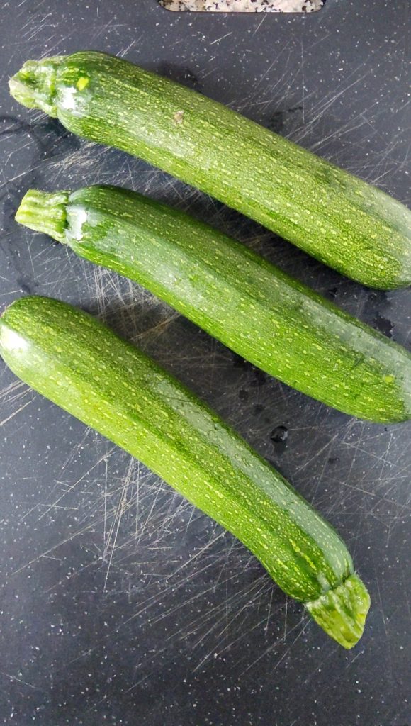 Op deze manier verliezen ze het water en worden ze heerlijk zoet. Spoel de courgettes af onder stromend water en laat ze uitlekken. Leg ze op een katoenen doek om te drogen.