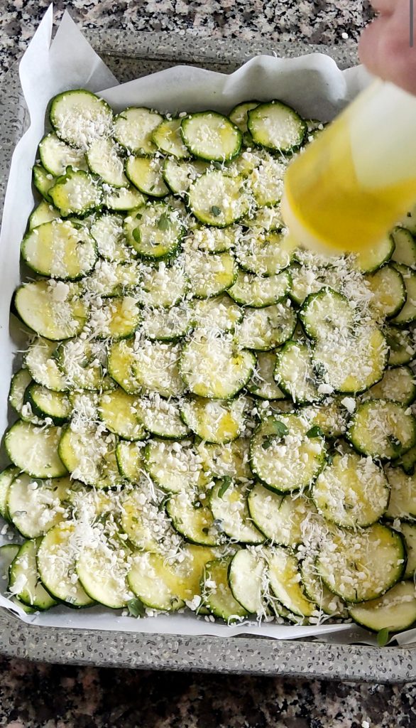 Courgettes uit de oven met parmezaan, krokant en smakelijk. Hoe dol ben ik op courgettes! Dit is de tijd van het jaar waarin de courgettes altijd de boventoon voeren in mijn keuken met talloze recepten van alle soorten. Het recept dat ik je vandaag wil vertellen is heel eenvoudig en snel, alleen courgettes, geraspte parmezaan en een scheutje olijfolie en meteen in de oven of in de airfryer. De courgettes zijn zo krokant en lekker dat ze in een oogwenk verdwijnen. Je hoeft alleen maar de courgettes flinterdun te snijden met behulp van een mandoline en ze te kruiden met een scheutje olie en veel geraspte parmezaan. Mis ook niet het recept voor de Courgettesticks en het recept voor de Witte Parmigiana van Courgettes. Als je van courgettes houdt, maar zelfs als ze niet je favorieten zijn, ben ik ervan overtuigd dat je ze met dit recept ook zult waarderen! Laten we dan naar de keuken rennen en samen onweerstaanbare Courgettes met parmezaan bereiden