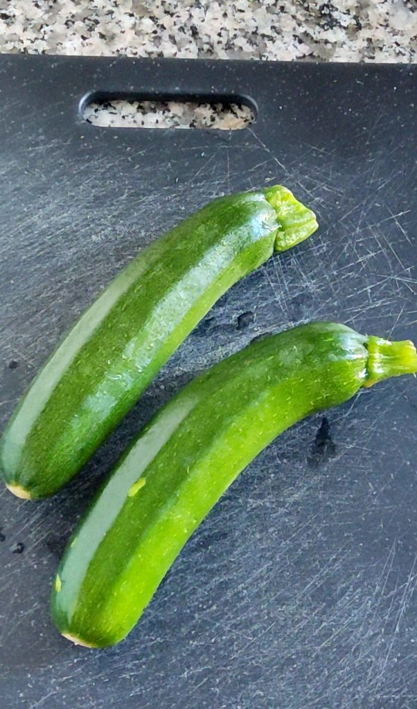 Niet alleen courgettes, je kunt ook 2 dun gesneden middelgrote uien toevoegen
