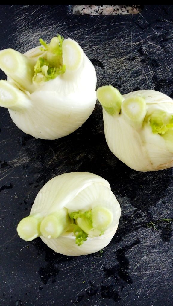 Maak de venkel schoon door de buitenste delen en stengels te verwijderen. Was ze en snijd ze dan in dunne plakjes