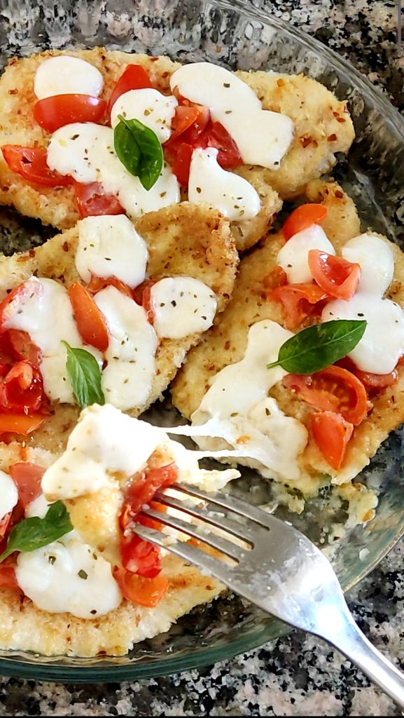 KIP UIT DE OVEN MET KERSTOMAATJES EN MOZZARELLA een hoofdgerecht dat iedereen aan tafel verovert. Het recept dat ik vandaag wil delen heeft als hoofdrol malse plakjes kipfilet die ik in enkele minuten heb omgetoverd tot een hoofdgerecht dat mijn kleine gezin meteen veroverde. Dit is het klassieke recept “reddet-het-diner” dat bij iedereen in de smaak valt: de kip blijft heerlijk mals dankzij het vocht van de kerstomaatjes en de gesmolten mozzarella maakt het extra lekker. Het is een kleurrijk gerecht dat meteen vrolijk stemt en ook bij de kleintjes in huis erg geliefd is. De kipfilet uit de oven heeft vaak het imago droog en een beetje saai te zijn… maar vandaag niet! En bij kip mag je ook mijn recept voor Gefrituurde kip en het recept voor Kip alla puttanesca niet missen. Vandaag laat ik je zien hoe je een simpel stuk vlees verandert in een heerlijk geurende Mediterrane kipfilet. Een krokant korstje maakt de kip knapperig van buiten en boterzacht van binnen. Het geheim is de kip door paneermeel te halen en eerst in de pan te bakken. Het is het perfecte recept voor als je weinig tijd hebt maar niets van smaak wilt inleveren. Laten we samen de keuken in gaan en de lekkerste kipfilet die je ooit hebt geproefd bereiden