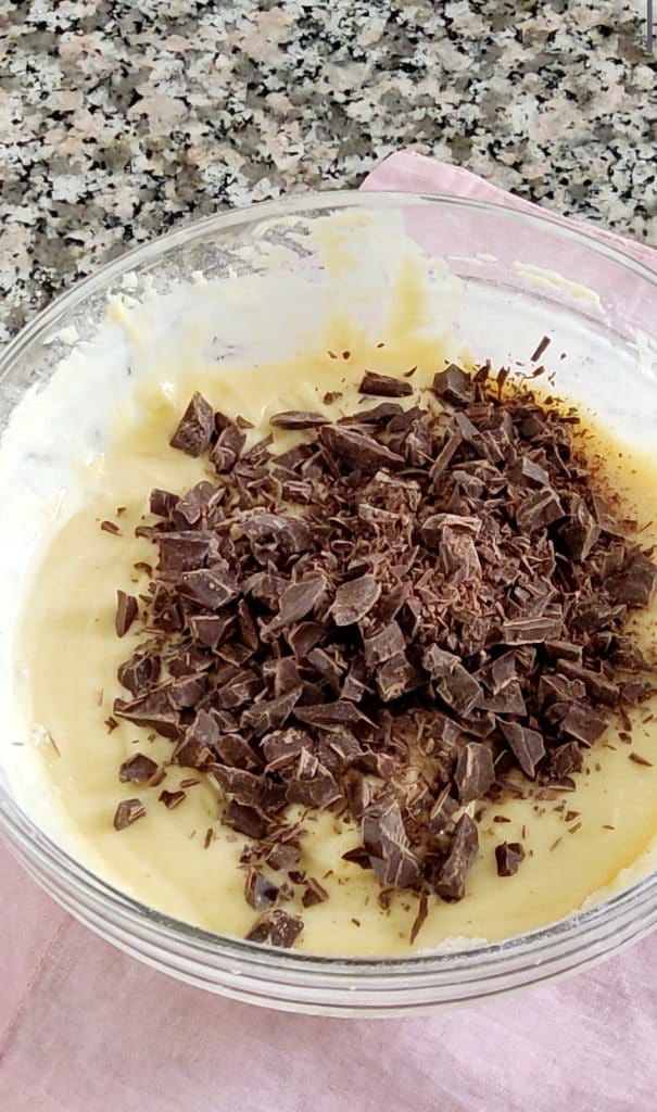 • Voeg tot slot de pure chocolade in kleine stukjes toe en meng eenvoudig met een spatel.