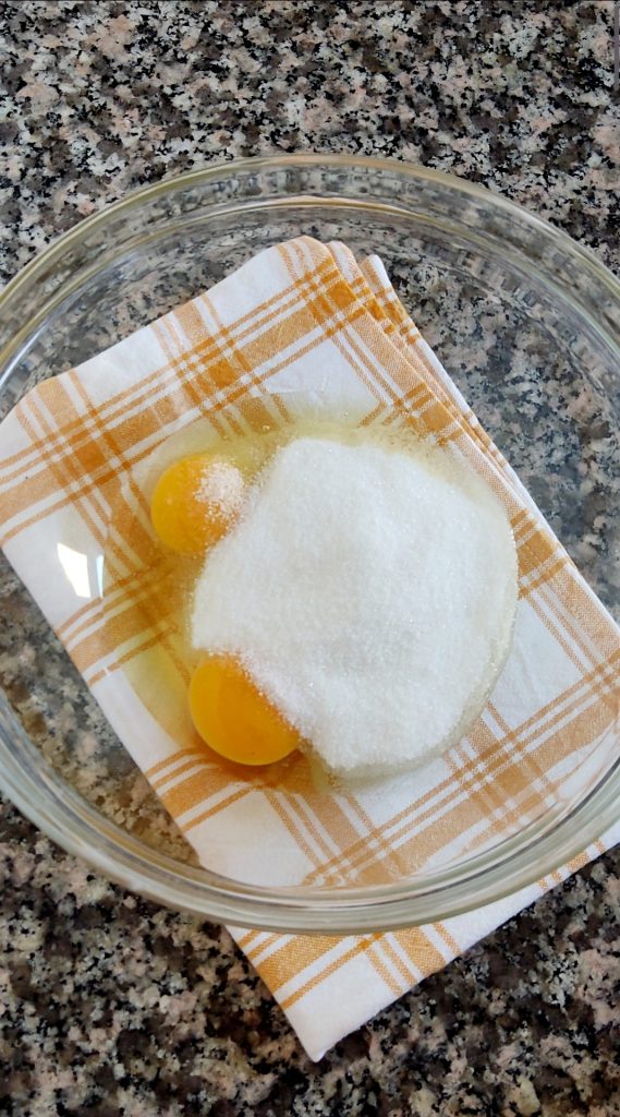 Klop de 2 hele eieren met de suiker met behulp van een elektrische mixer gedurende 7-8 minuten tot een bleek en luchtig mengsel. Voeg de wortelcrème, olie en melk toe. Meng.