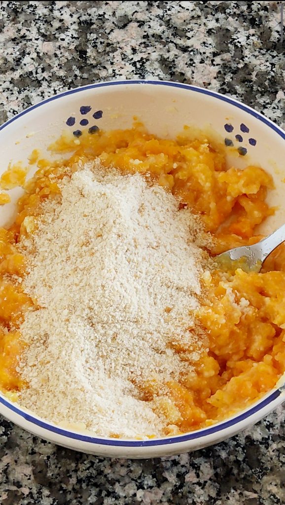 • Voeg 3-4 eetlepels paneermeel toe en meng met een vork