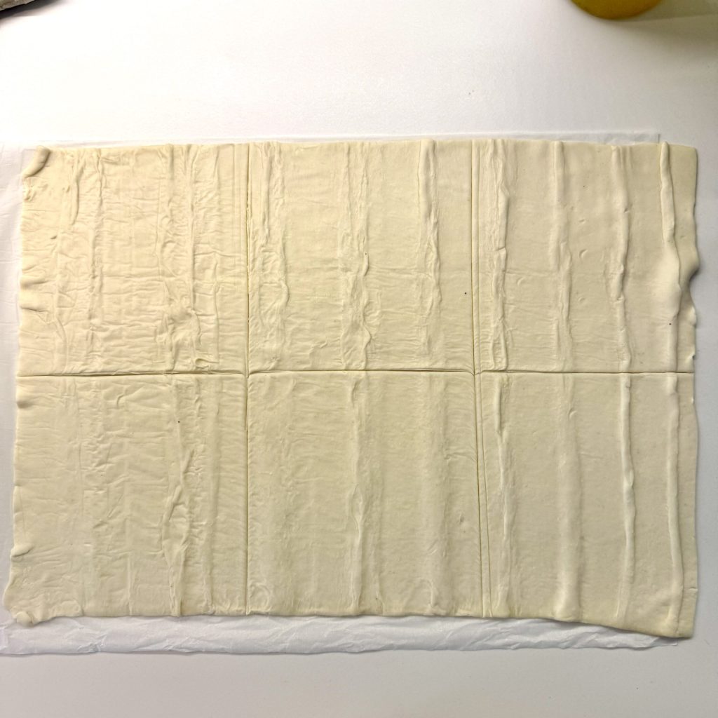 Snijd met een mes het bladerdeeg in 6 ongeveer gelijke delen.