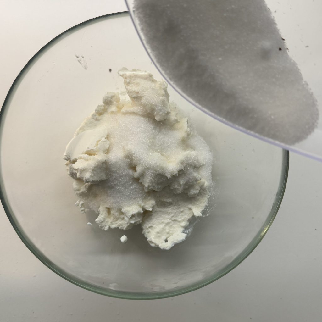 Doe de goed uitgelekte ricotta in een kom. Die van de dag ervoor is perfect.