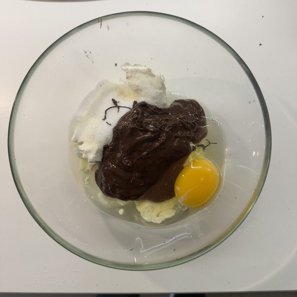 Voeg in de kom, samen met de andere ingrediënten, ook het ei toe.