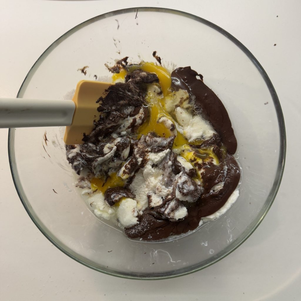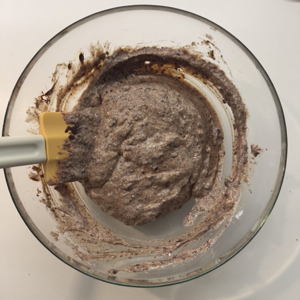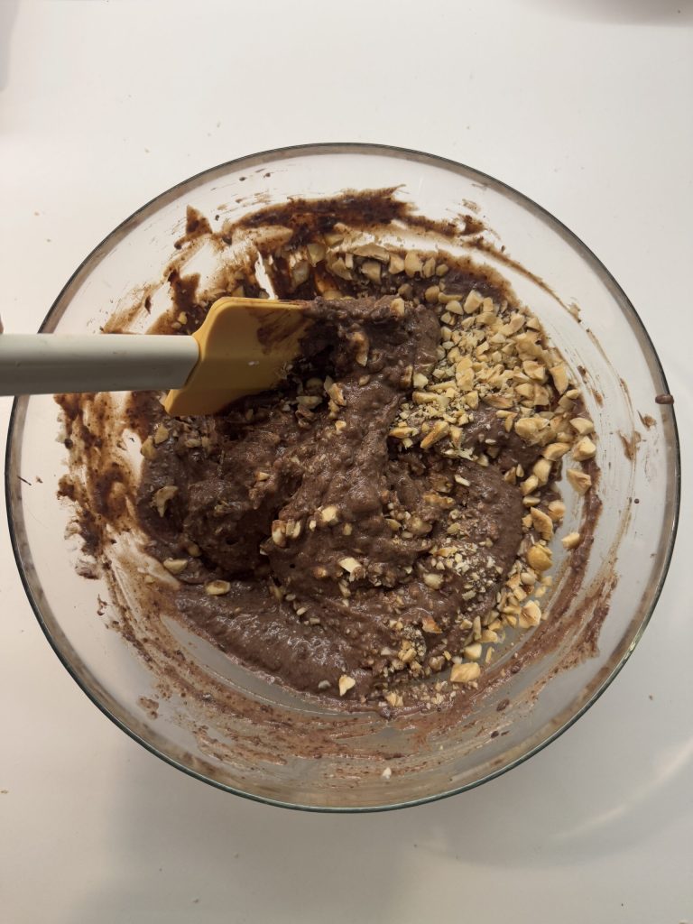 Voeg ook de 2 eetlepels hazelnootpasta toe en roer opnieuw.