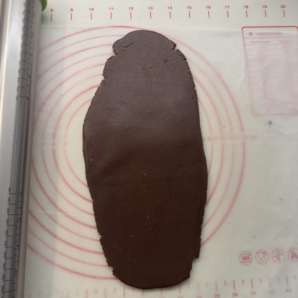 Kneed de restjes opnieuw en rol ze uit tot een soort rechthoek.