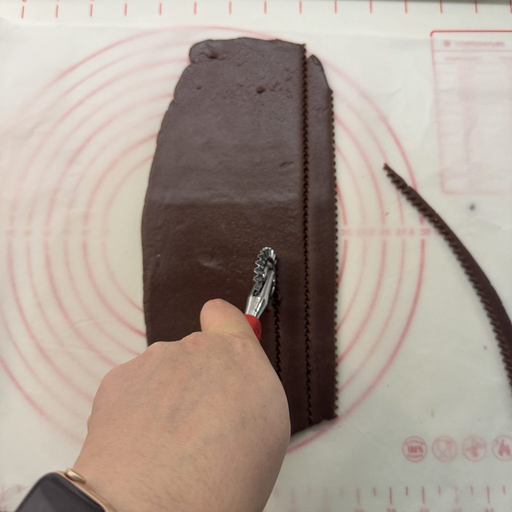 Maak met een kartelroller stroken van ongeveer 1,5 cm breed.
