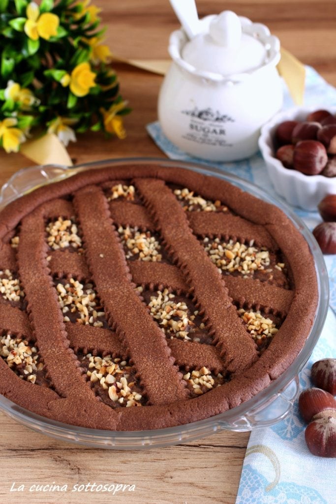 Het recept voor deze chocolade- en hazelnoottaart is heel eenvoudig en heeft geen speciale voorzorgsmaatregelen nodig, behalve dat je het deeg ruim van tevoren bereidt, omdat, zoals bij alle boterdegen, het wat rusttijd in de koelkast nodig heeft. In ieder geval kun je deze taart ook maken met wit deeg of met olie deeg.