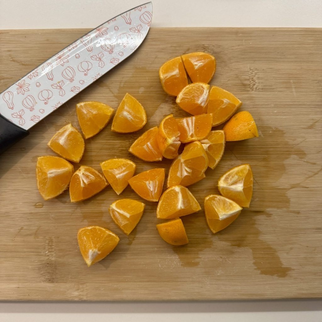 Was de clementines goed en snijd ze in ongeveer gelijke stukken.