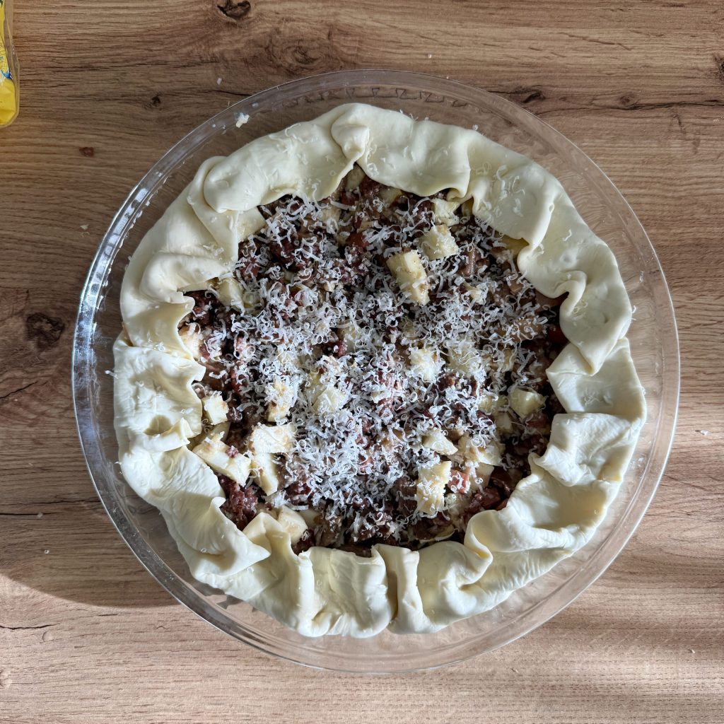 Het heeft een rijke en geheel herfstsmaak, dankzij de champignons en de zoutigheid van de Norcia-worst die ik als vulling heb gebruikt. Voor gemak en tijdsbesparing heb ik kant-en-klare bladerdeeg gebruikt. U kunt echter ook bladerdeeg gebruiken of de bodem zelf bereiden. U kunt kiezen voor de wijnpasta voor hartige taarten of het gerezen deeg dat ik gebruik voor panzerotti, bakplaatpizza’s en calzones.