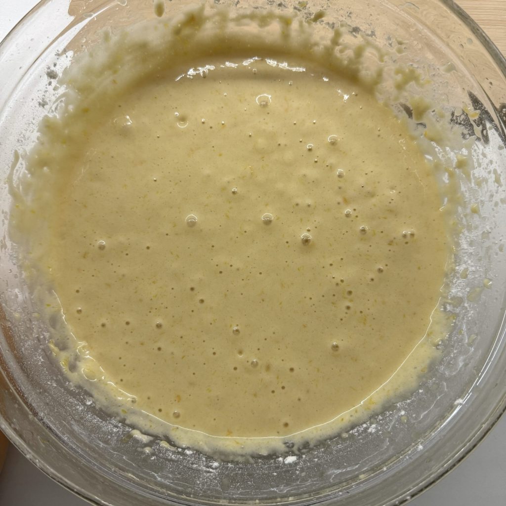 Ik raad aan om ook het vruchtvlees dat in de citruspers achterblijft toe te voegen, omdat de cake dan nog geuriger wordt. Zet het apart.