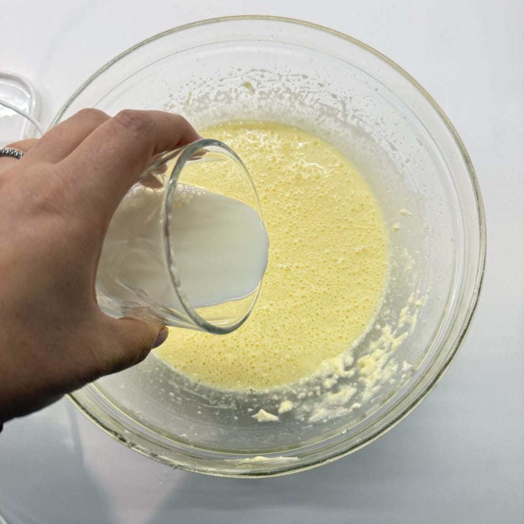 • Klop de ingrediënten met de elektrische mixer een paar minuten tot een lichte en schuimige massa.